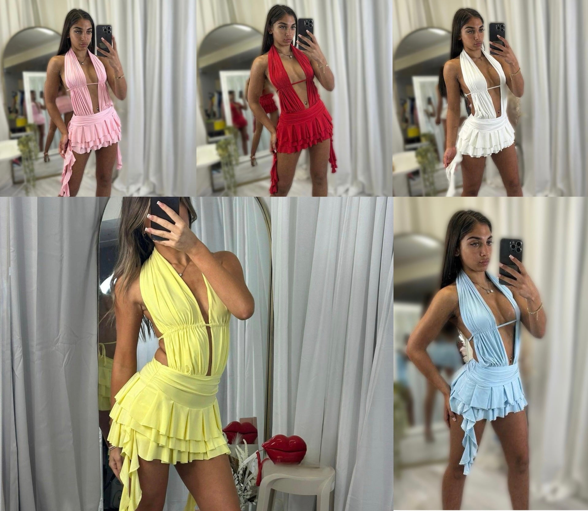 Frilled hem bottom dress with backless detail