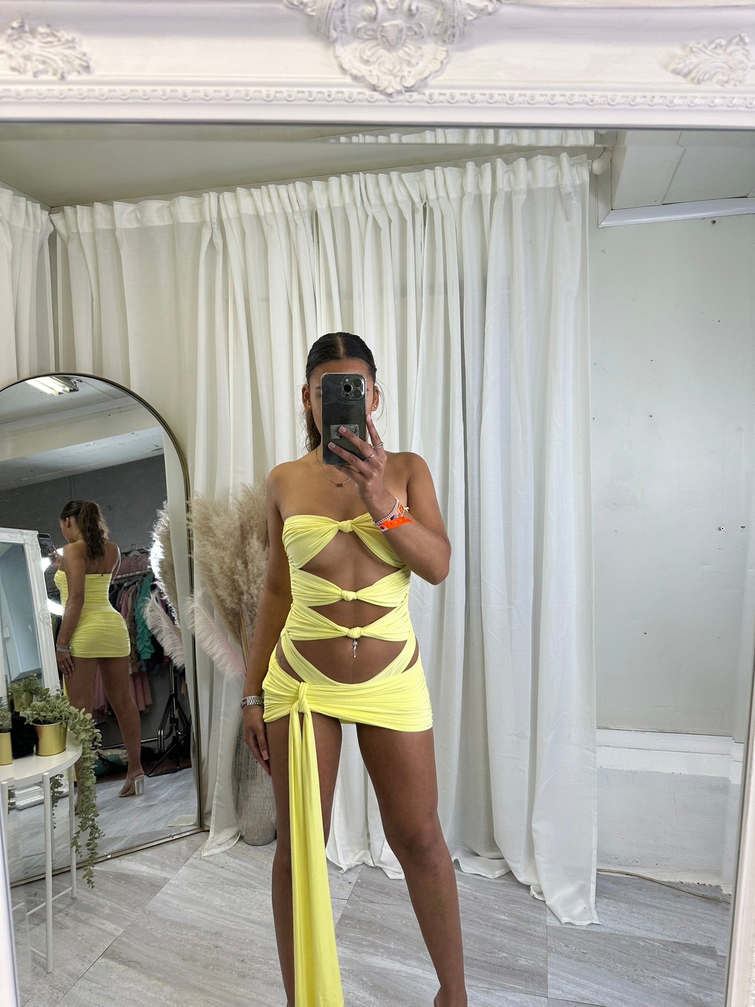 Elevate your beach style with our gorgeous knot tie cut out bodysuit and wrap skirt. Perfect for...
